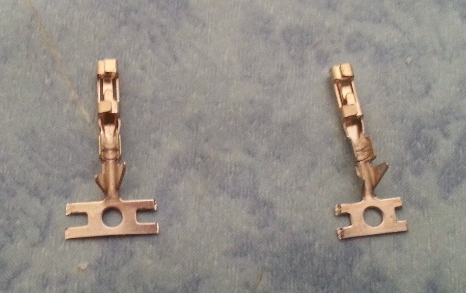 4. On insère le contact dans la pince en choisissant la bonne "gauge". La bande métallique sert de butée