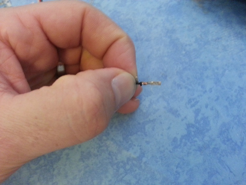 1. Couper la bande metallique pour n'avoir qu'une seul contact, sans retirer cette bande metallique.